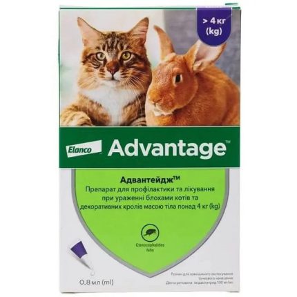 Капли Elanco (Bayer) Advantage от блох для кошек и кроликов от 4 до 8 кг 0.8 мл 1 пипетка