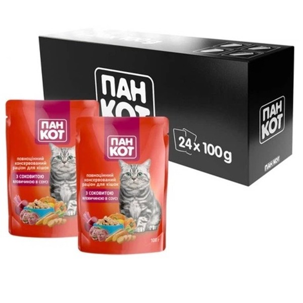 Пан Кот «Говядина» в соусе 24×100 г — влажный корм для кошек